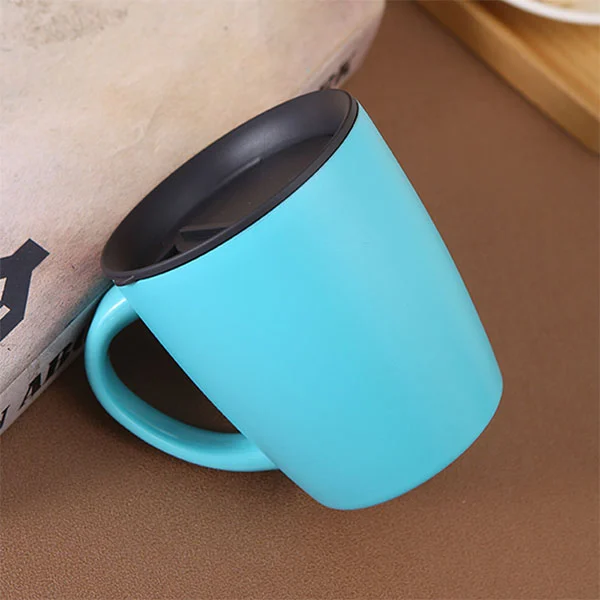 Hoc trend-respiciens immaculatam ferro capulus mug cum operculo, rotunda apparentia, et custodiant bonum modus, positus in mensa, sit quoque opus artis.