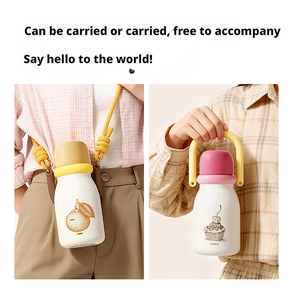 BPA liberum thermos poculum features ergonomic utrem corporis designans, facile infantibus (supra 18 mensium) comprehendere cum parvis manibus