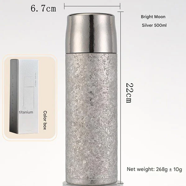 Titanium aqua Utres duplex iacuit vacuum consilium velit. Nostrae utres aquae metallicae probatae sunt ut potibus tuis optimam insulationem praeberent, sive cola frigida sive capulus calidus est. Potiones calidae possunt foveri usque ad VIII horas, et frigidae potiones calere possunt usque ad XII horas. (Experimentalis notitia: Insulatio: Adde aquam ad cella temperiem 99°C, et temperatura superabit 60° C post 6 horas velit; Refrigeratio: Adde aquam ad cella temperiem 0°C, et siccus infra 5°C post 6 horas velit).