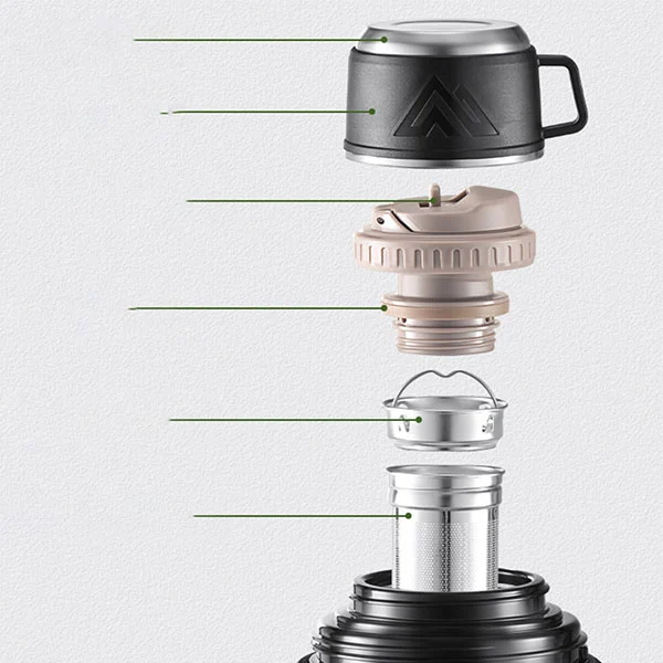 Vacuum insulated travel kettle, made of 316 stainless steel and 201 stainless steel, with an inner liner made of high-grade 316 stainless steel, which is anti-oxidation and has no odor even after long-term water storage.